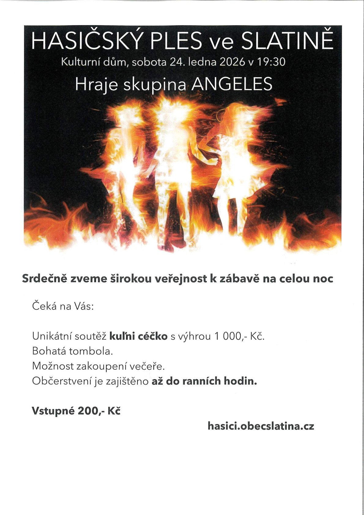 V sobotu 24. ledna 2026 v 19:30 se ve Slatině v kulturním domě uskuteční hasičský ples.