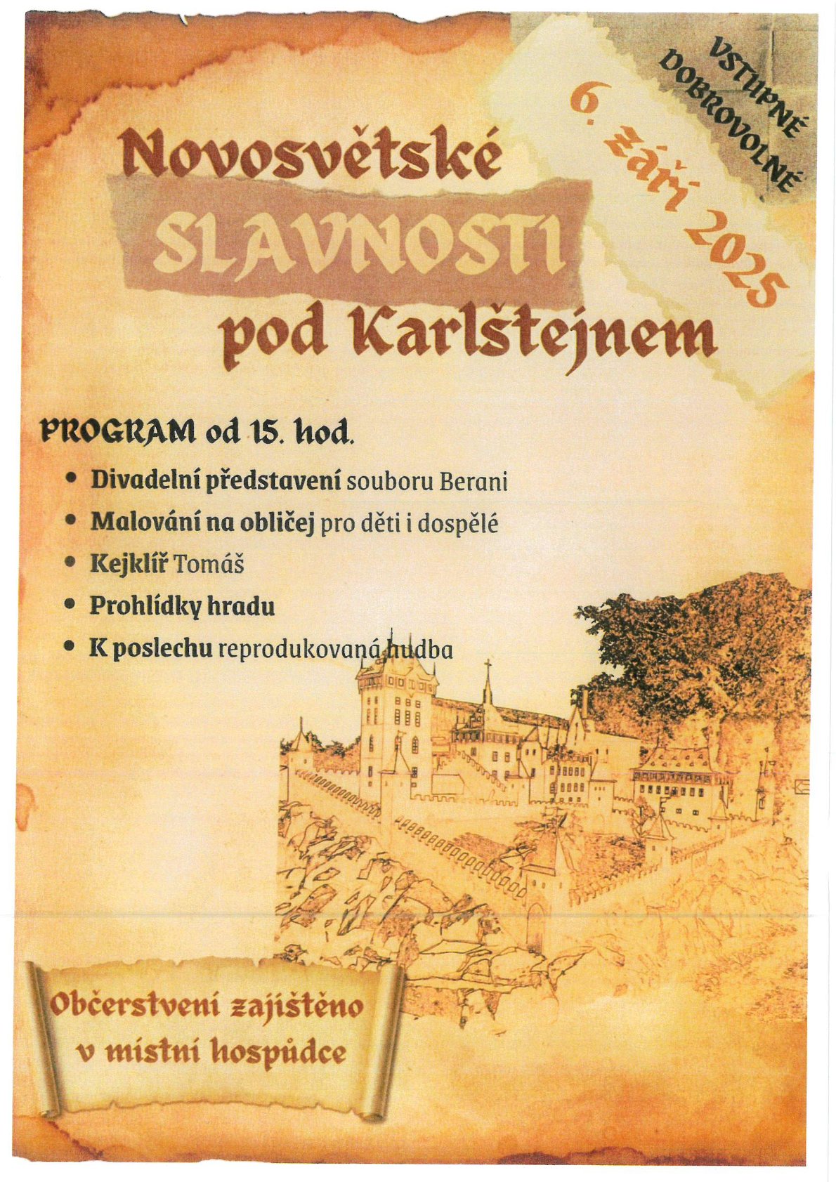 Srdečně Vás zveme na Novosvětské slavnosti pod Karlštejnem.